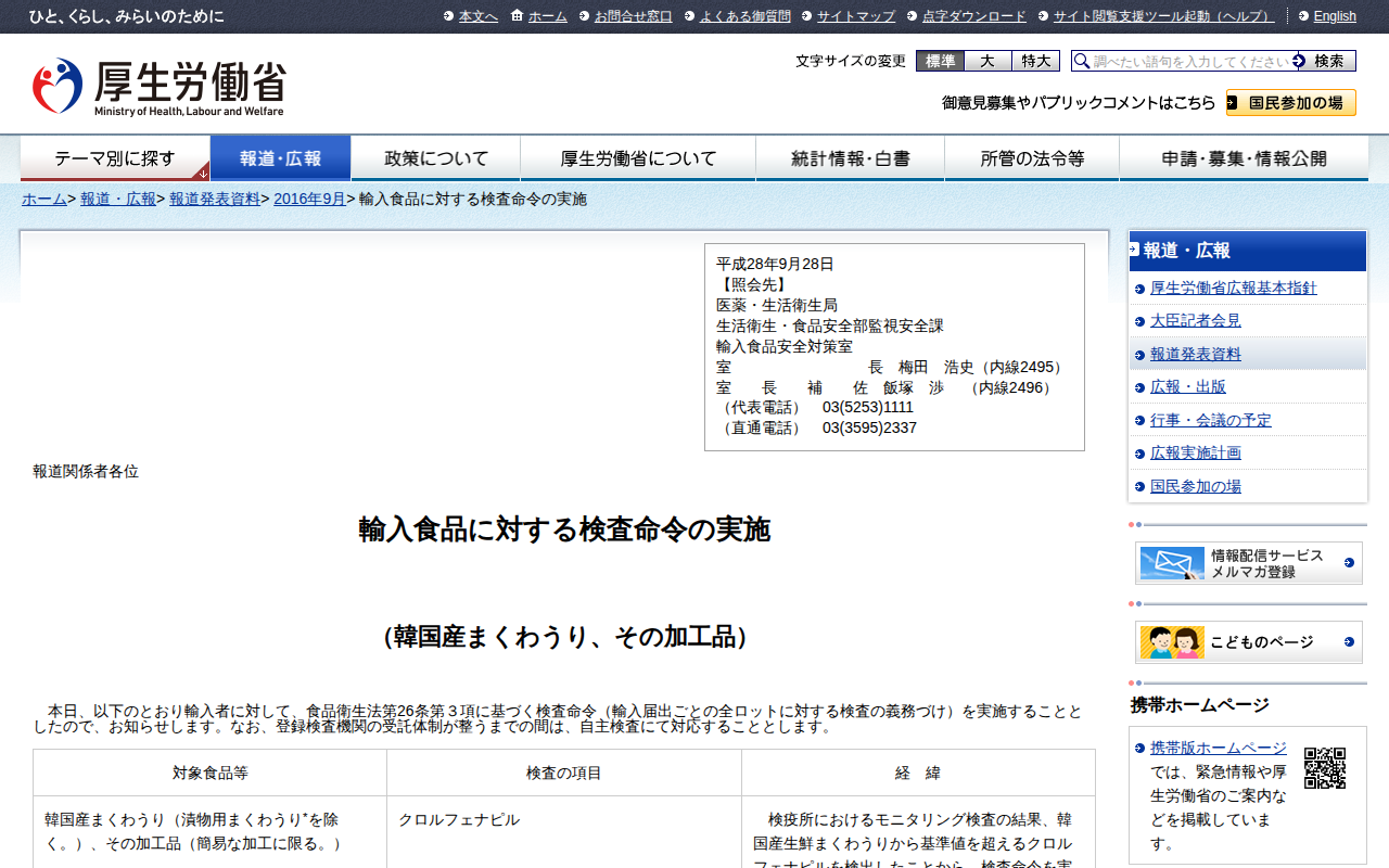 www.mhlw.go.jp/stf/houdou/0000137628.htmlのウェブアーカイブ(魚拓)です。 元のページが削除されても、保存されたスクリーンショットとHTMLで内容を確認できます。