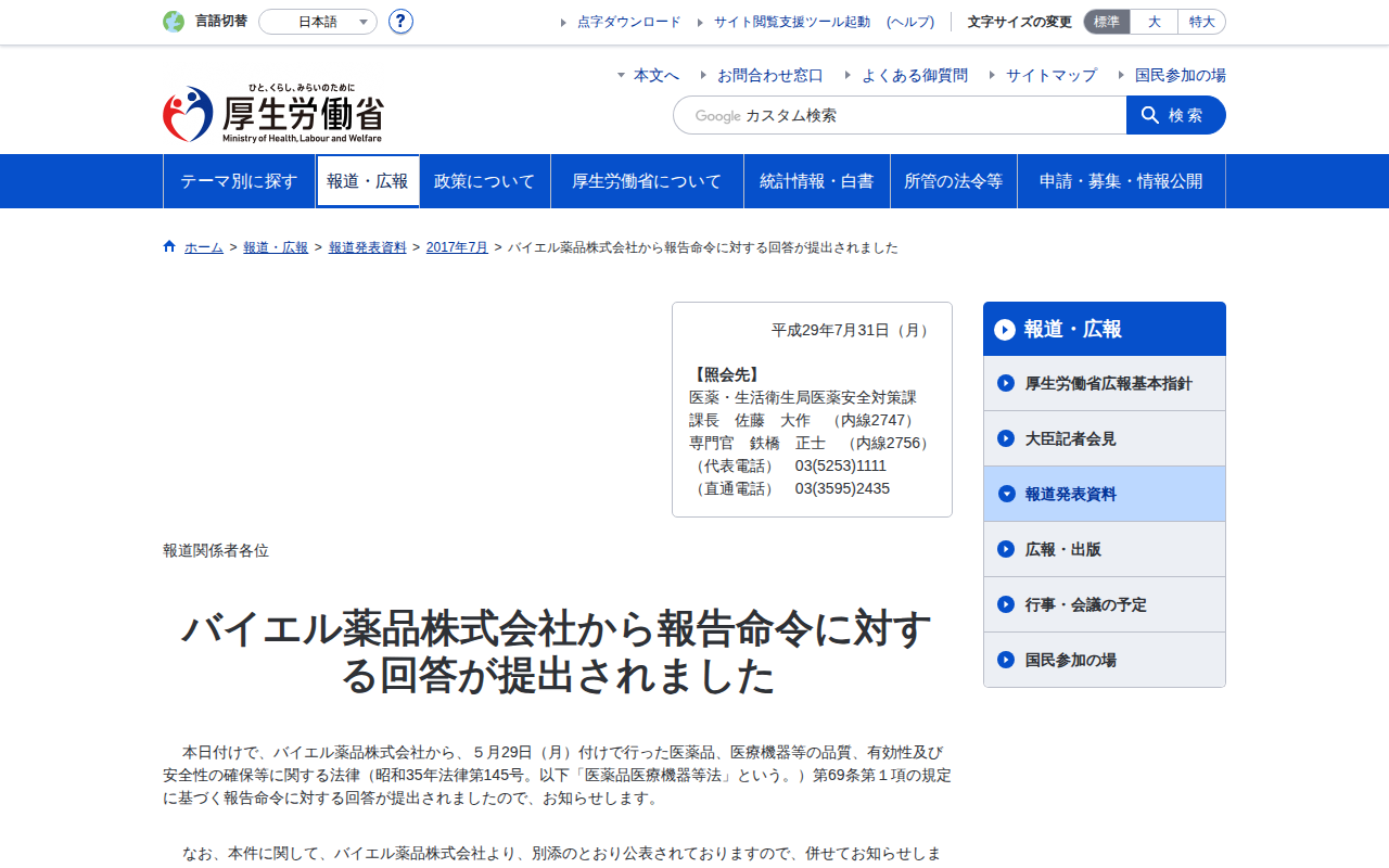 www.mhlw.go.jp/stf/houdou/0000172994.htmlのウェブアーカイブ(魚拓)です。 元のページが削除されても、保存されたスクリーンショットとHTMLで内容を確認できます。