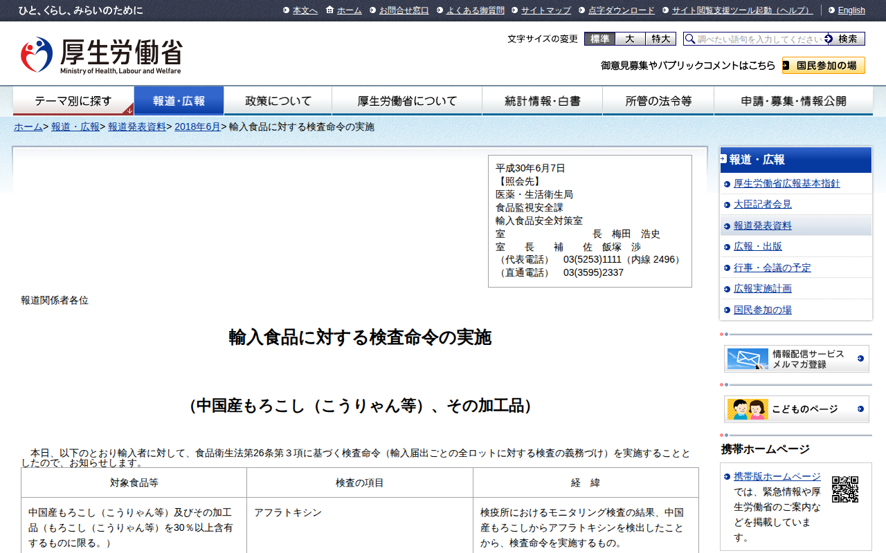 www.mhlw.go.jp/stf/houdou/0000210484.htmlのウェブアーカイブ(魚拓)です。 元のページが削除されても、保存されたスクリーンショットとHTMLで内容を確認できます。