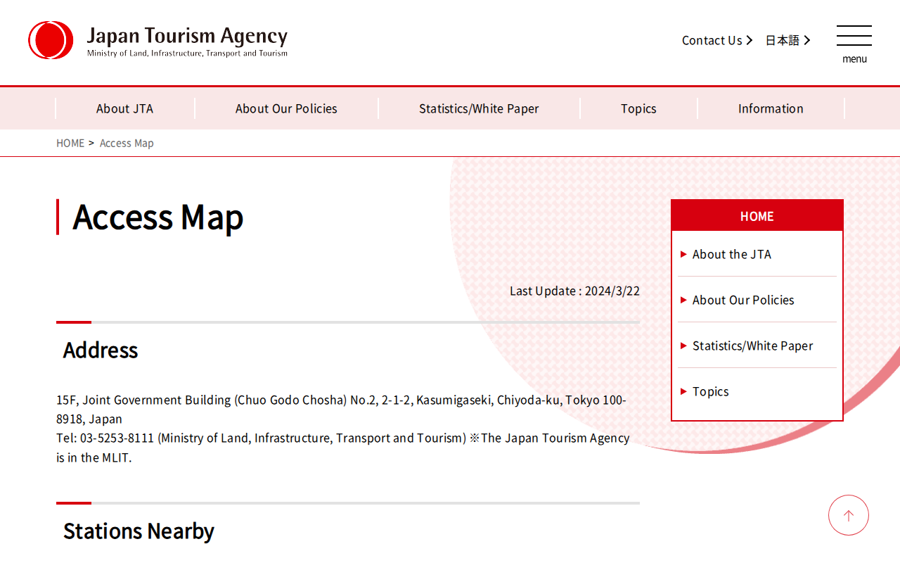 www.mlit.go.jp/kankocho/en/map.htmlのウェブアーカイブ(魚拓)です。 元のページが削除されても、保存されたスクリーンショットとHTMLで内容を確認できます。