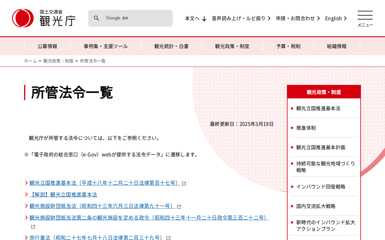 www.mlit.go.jp/kankocho/seisaku_seido/shokanhorei/index.html