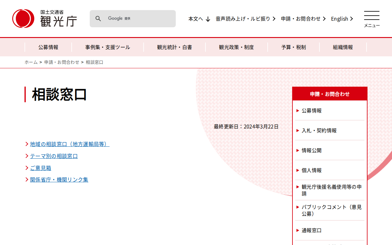www.mlit.go.jp/kankocho/sodan_madoguchi/index.html