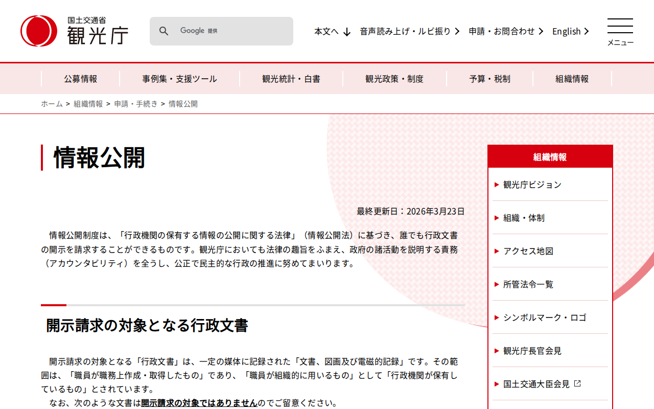www.mlit.go.jp/kankocho/soshiki/shinsei_tetsuzuki/johokokai.html