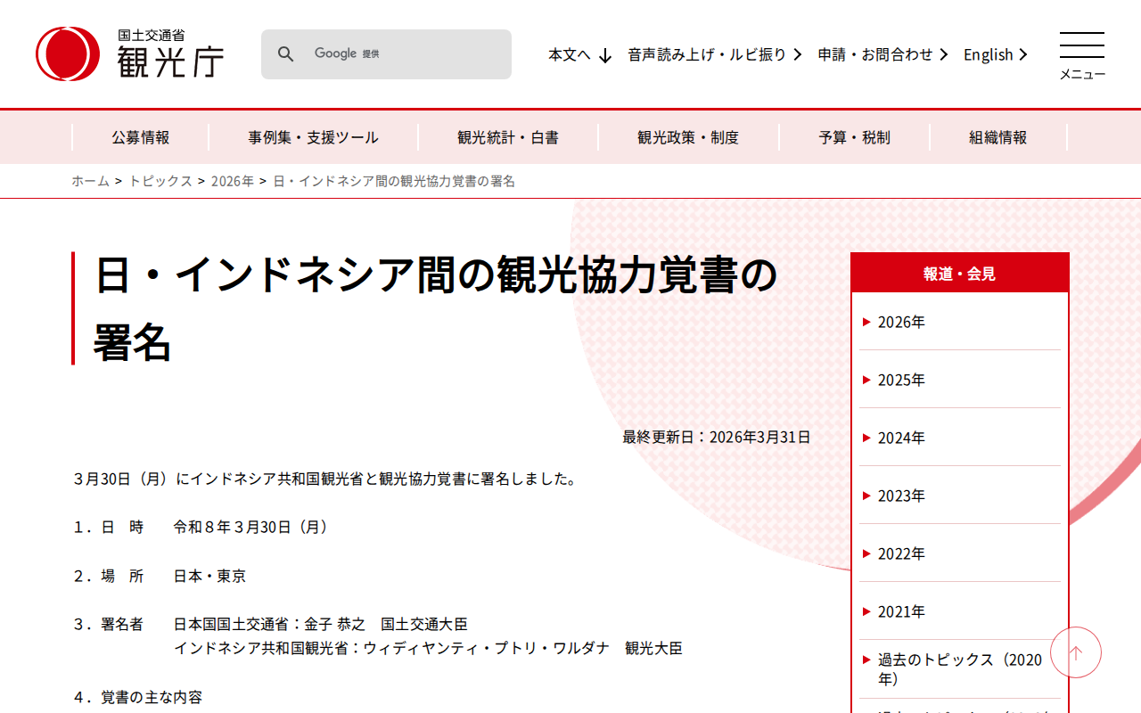 www.mlit.go.jp/kankocho/topics03_00036.htmlのウェブアーカイブ(魚拓)です。 元のページが削除されても、保存されたスクリーンショットとHTMLで内容を確認できます。