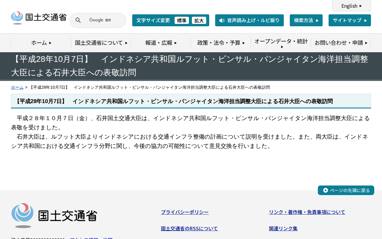 www.mlit.go.jp/page/kanbo01_hy_005023_re.htmlのウェブアーカイブ(魚拓)です。 元のページが削除されても、保存されたスクリーンショットとHTMLで内容を確認できます。
