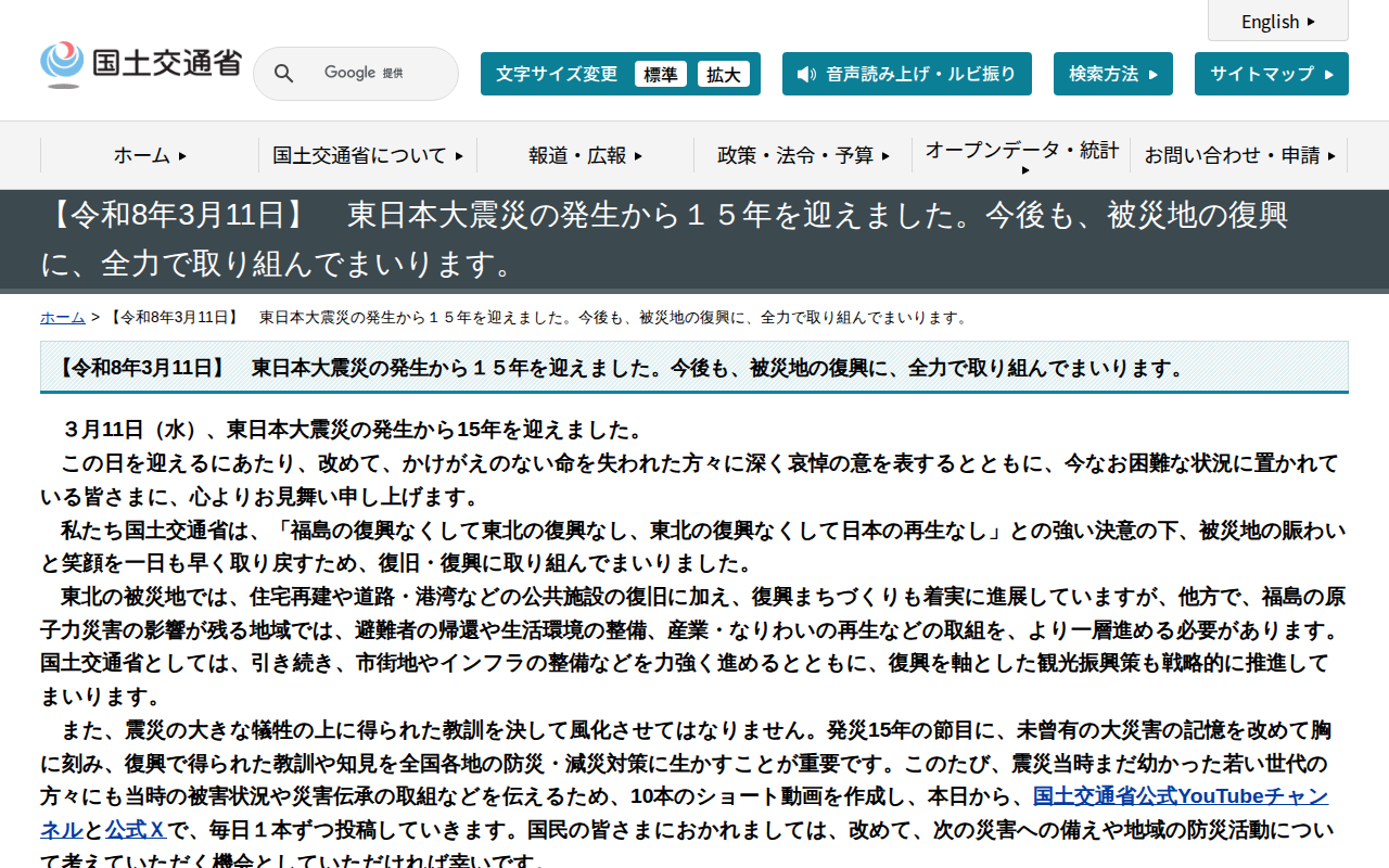 www.mlit.go.jp/page/kanbo01_hy_010747_re.htmlのウェブアーカイブ(魚拓)です。 元のページが削除されても、保存されたスクリーンショットとHTMLで内容を確認できます。