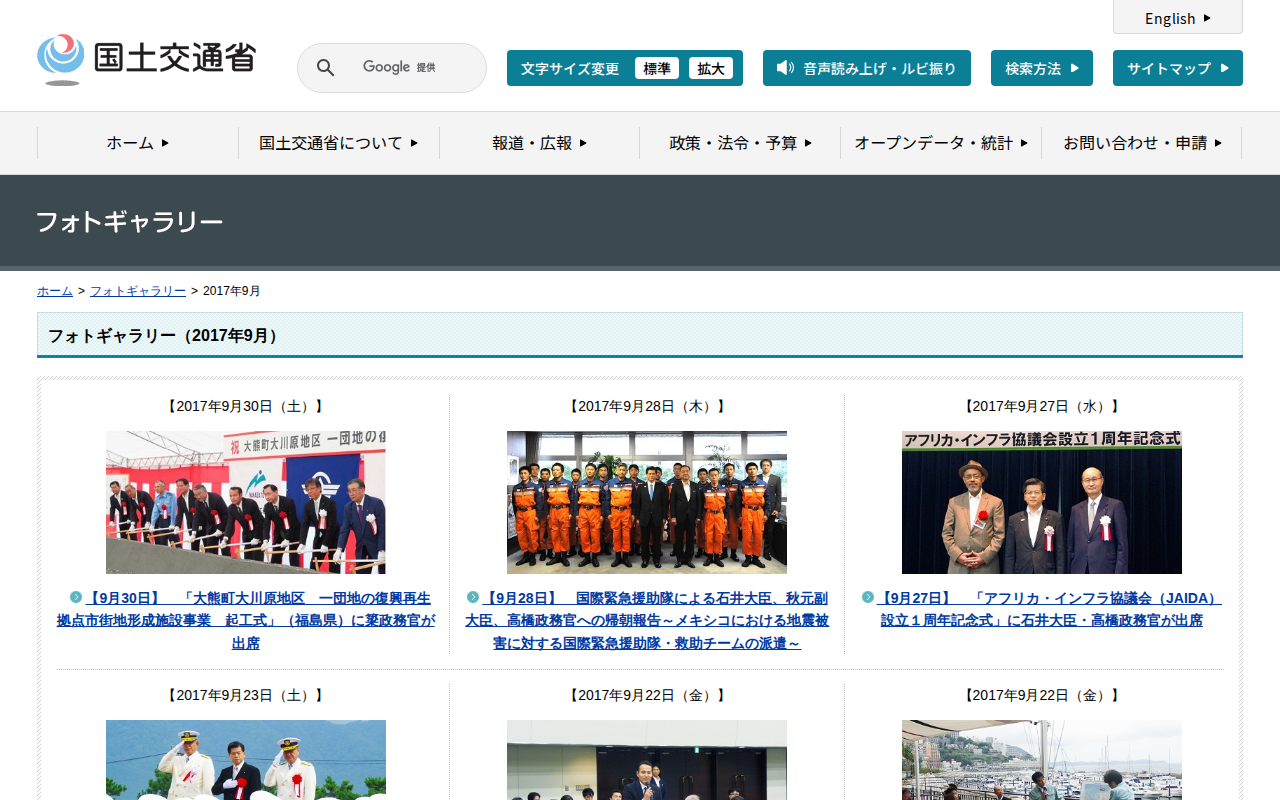 www.mlit.go.jp/photo/gallery201709.htmlのウェブアーカイブ(魚拓)です。 元のページが削除されても、保存されたスクリーンショットとHTMLで内容を確認できます。