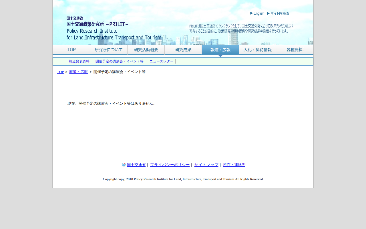 www.mlit.go.jp/pri/information/event.htmlのウェブアーカイブ(魚拓)です。 元のページが削除されても、保存されたスクリーンショットとHTMLで内容を確認できます。