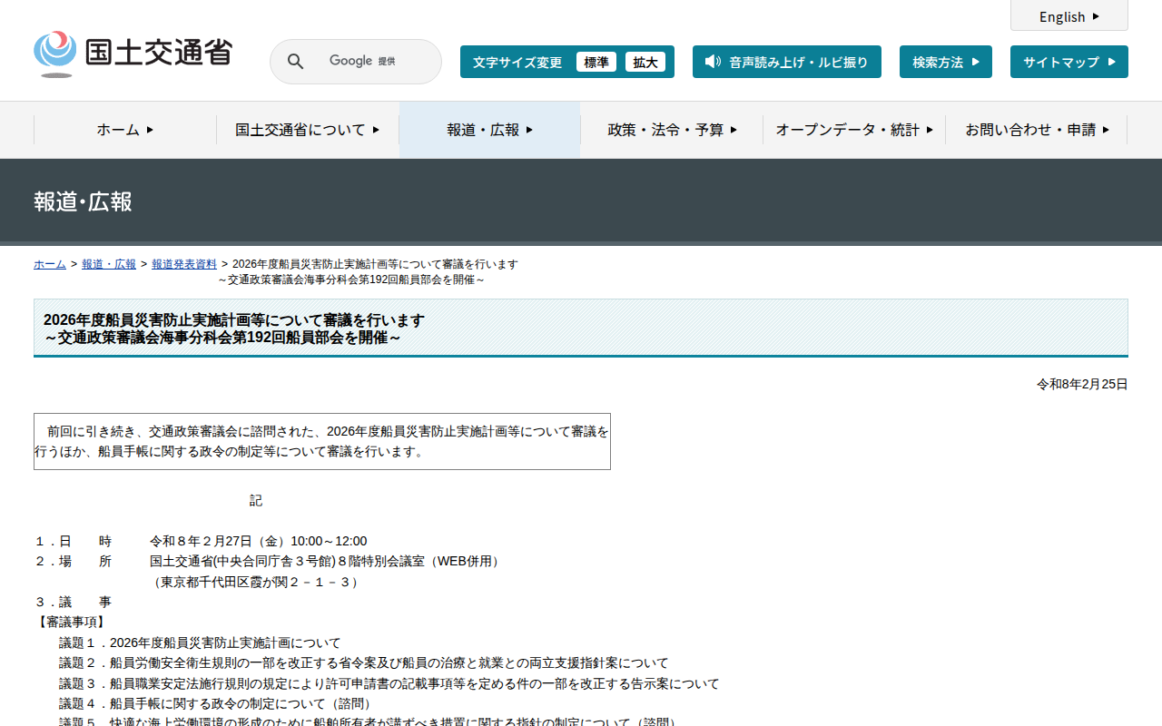 www.mlit.go.jp/report/press/kaiji04_hh_000381.htmlのウェブアーカイブ(魚拓)です。 元のページが削除されても、保存されたスクリーンショットとHTMLで内容を確認できます。