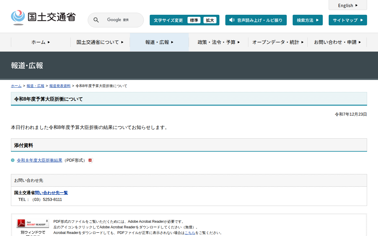 www.mlit.go.jp/report/press/kanbo05_hh_000301.htmlのウェブアーカイブ(魚拓)です。 元のページが削除されても、保存されたスクリーンショットとHTMLで内容を確認できます。
