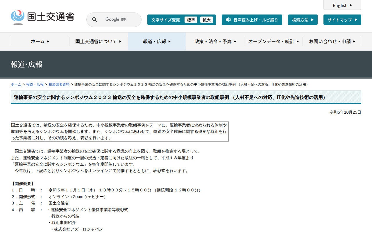 www.mlit.go.jp/report/press/kanbo10_hh_000140.htmlのウェブアーカイブ(魚拓)です。 元のページが削除されても、保存されたスクリーンショットとHTMLで内容を確認できます。
