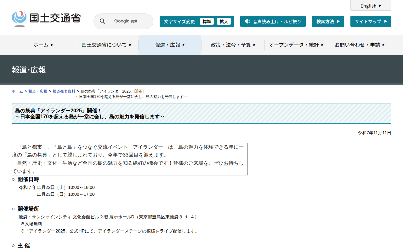 www.mlit.go.jp/report/press/kokudoseisaku11_hh_000131.htmlのウェブアーカイブ(魚拓)です。 元のページが削除されても、保存されたスクリーンショットとHTMLで内容を確認できます。