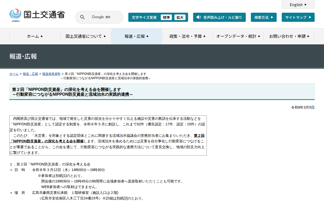 www.mlit.go.jp/report/press/mizukokudo04_hh_000289.htmlのウェブアーカイブ(魚拓)です。 元のページが削除されても、保存されたスクリーンショットとHTMLで内容を確認できます。