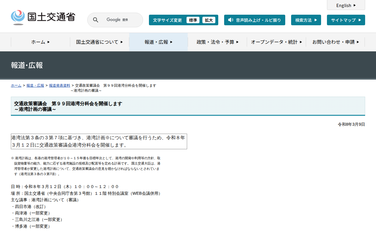 www.mlit.go.jp/report/press/port01_hh_000317.htmlのウェブアーカイブ(魚拓)です。 元のページが削除されても、保存されたスクリーンショットとHTMLで内容を確認できます。