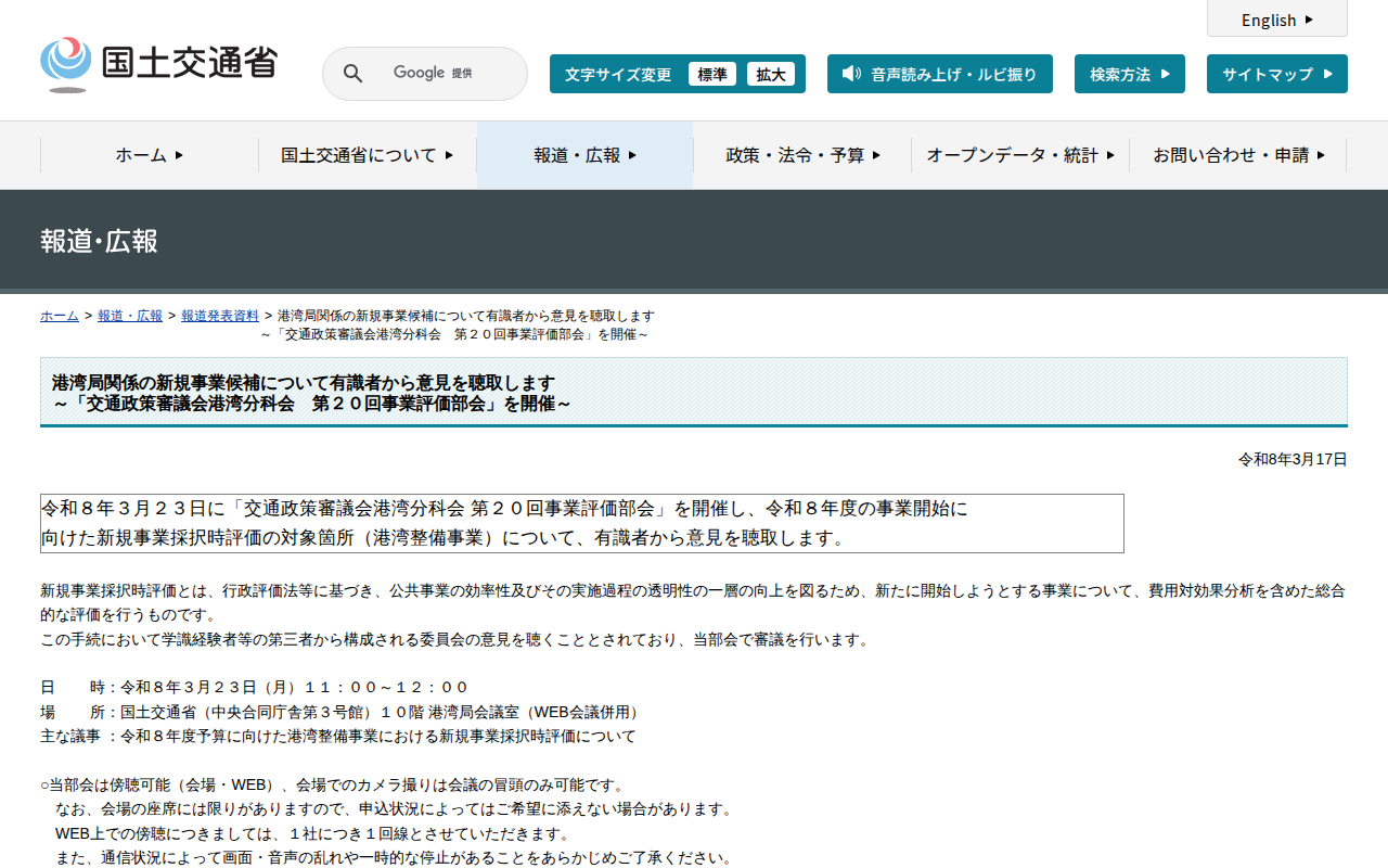 www.mlit.go.jp/report/press/port01_hh_000319.htmlのウェブアーカイブ(魚拓)です。 元のページが削除されても、保存されたスクリーンショットとHTMLで内容を確認できます。