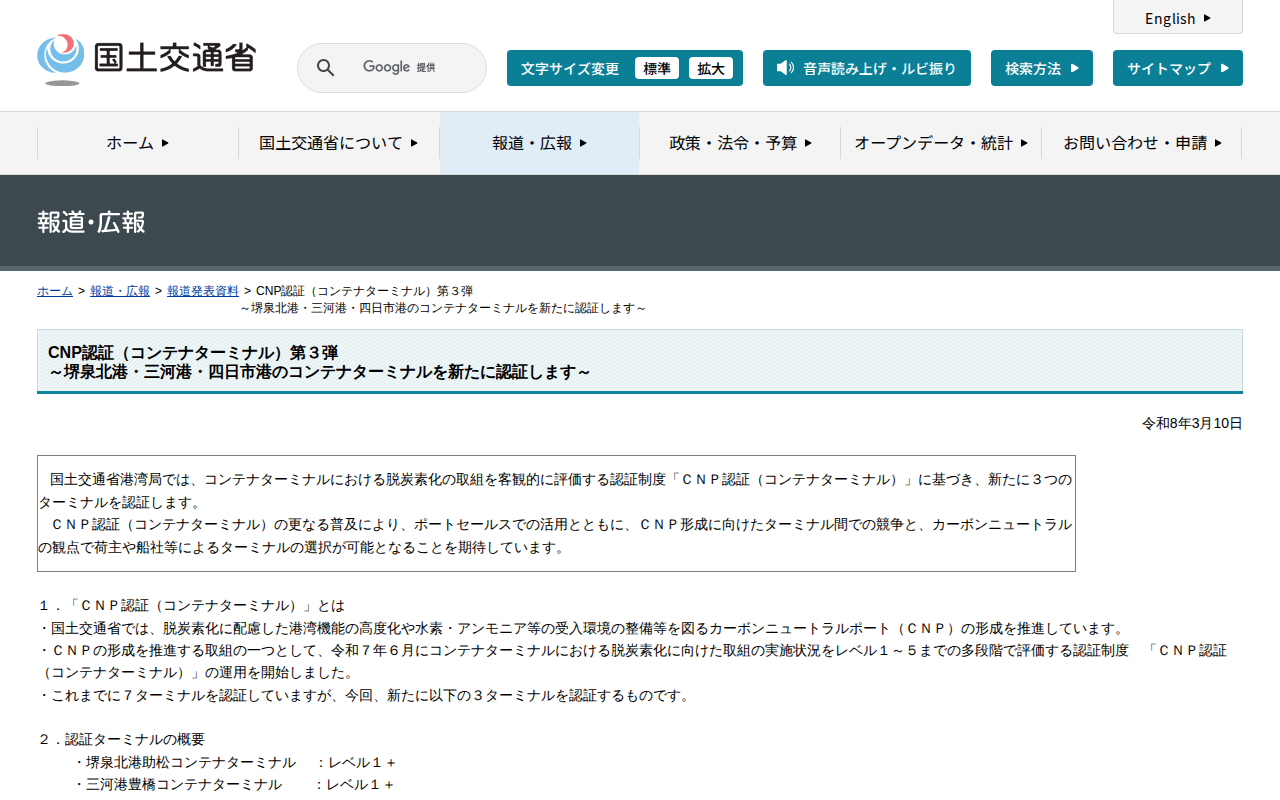 www.mlit.go.jp/report/press/port04_hh_000552.htmlのウェブアーカイブ(魚拓)です。 元のページが削除されても、保存されたスクリーンショットとHTMLで内容を確認できます。