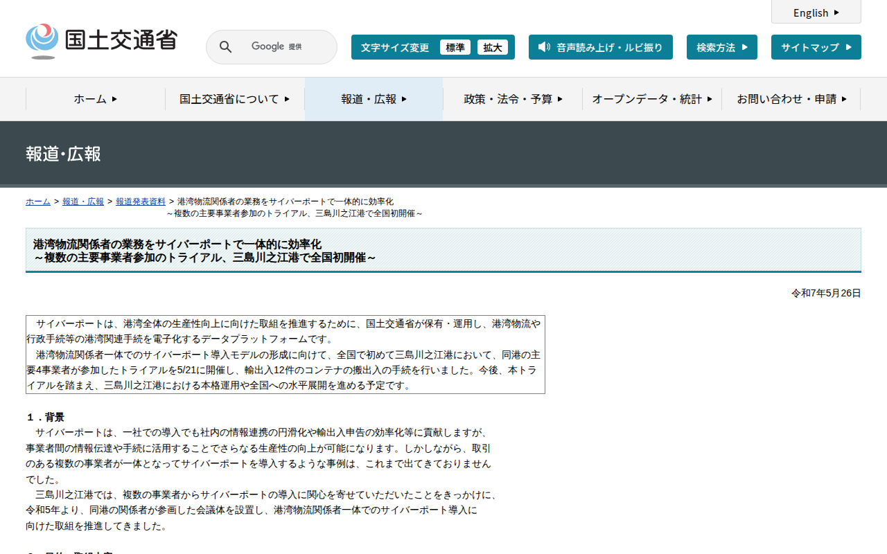 www.mlit.go.jp/report/press/port05_hh_000382.htmlのウェブアーカイブ(魚拓)です。 元のページが削除されても、保存されたスクリーンショットとHTMLで内容を確認できます。