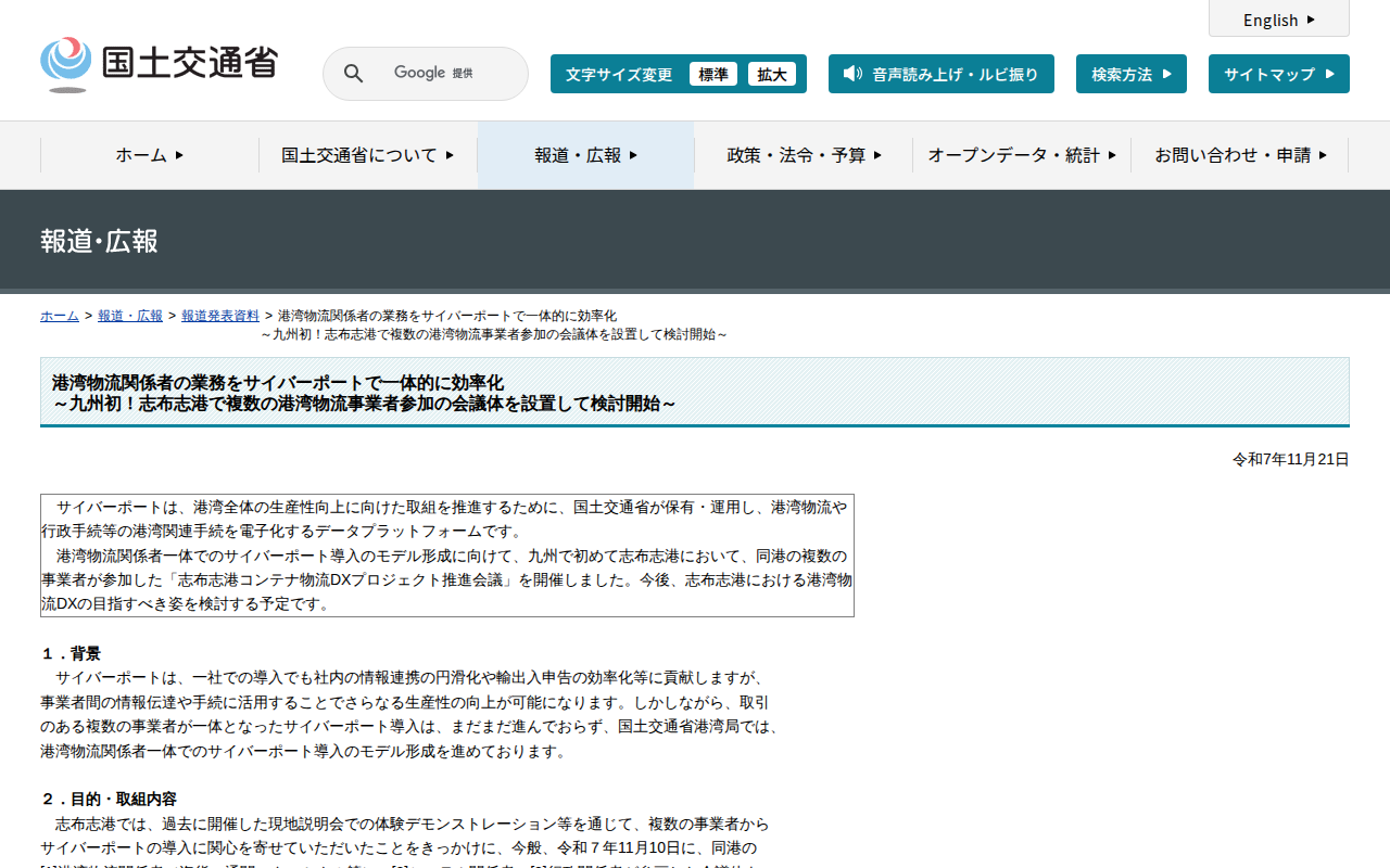 www.mlit.go.jp/report/press/port05_hh_000411.htmlのウェブアーカイブ(魚拓)です。 元のページが削除されても、保存されたスクリーンショットとHTMLで内容を確認できます。
