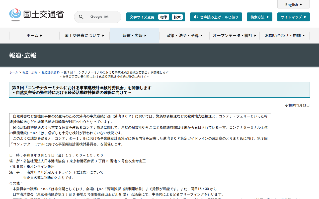 www.mlit.go.jp/report/press/port07_hh_000262.htmlのウェブアーカイブ(魚拓)です。 元のページが削除されても、保存されたスクリーンショットとHTMLで内容を確認できます。