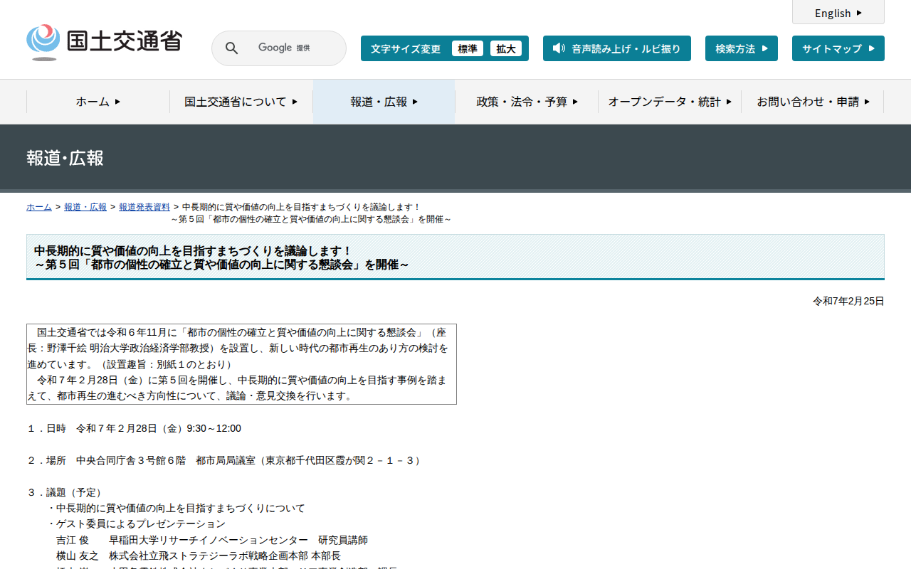 www.mlit.go.jp/report/press/toshi05_hh_000481.htmlのウェブアーカイブ(魚拓)です。 元のページが削除されても、保存されたスクリーンショットとHTMLで内容を確認できます。