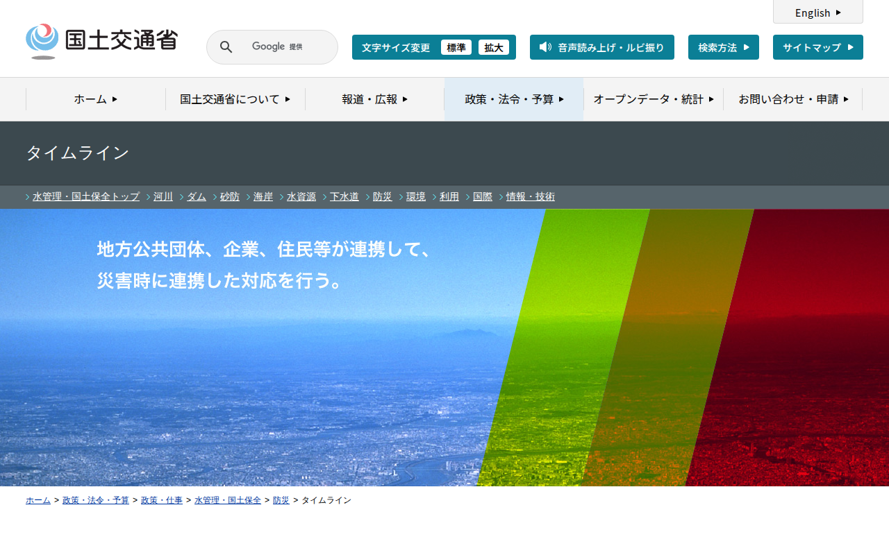 www.mlit.go.jp/river/bousai/timeline/index.htmlのウェブアーカイブ(魚拓)です。 元のページが削除されても、保存されたスクリーンショットとHTMLで内容を確認できます。