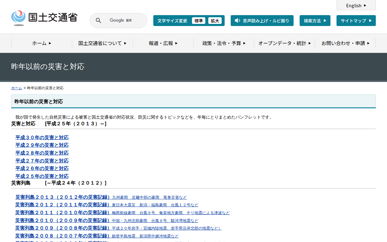 www.mlit.go.jp/saigai/kakonosaigai.html