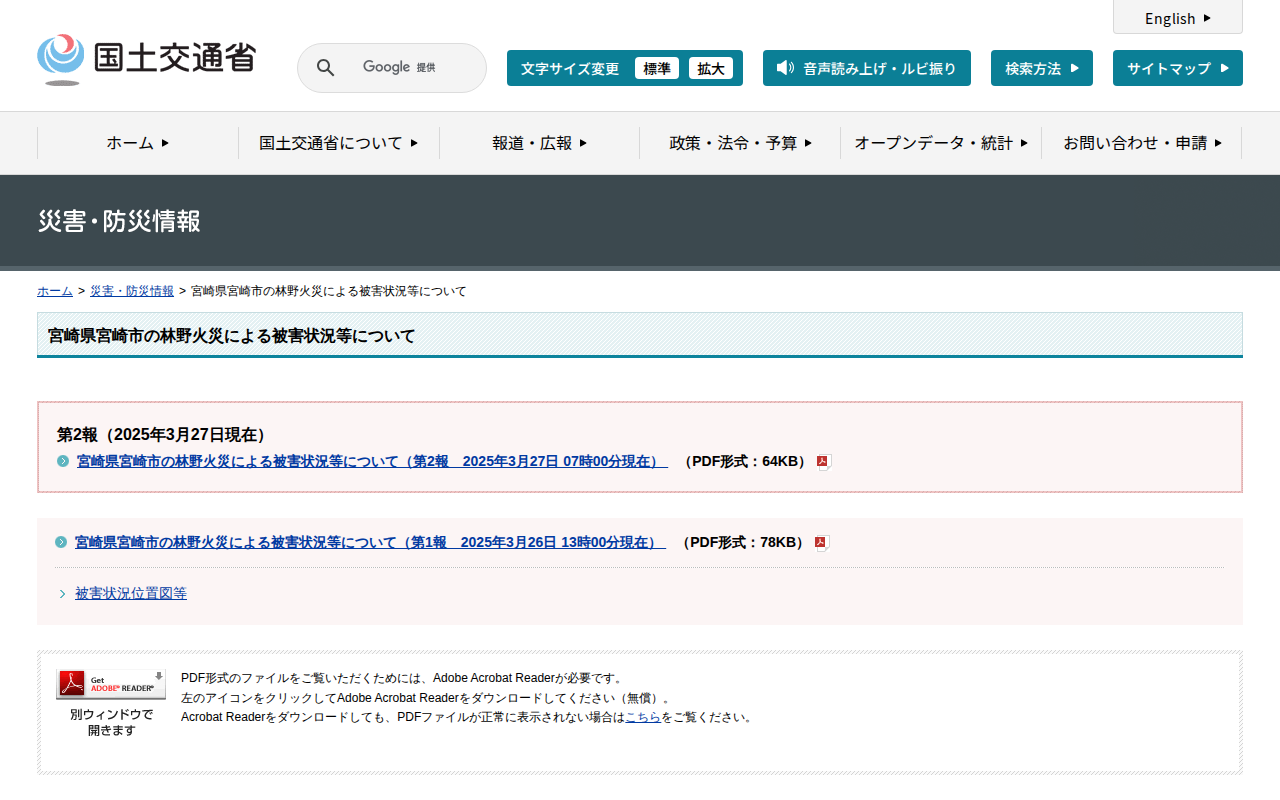 www.mlit.go.jp/saigai/saigai_250326.htmlのウェブアーカイブ(魚拓)です。 元のページが削除されても、保存されたスクリーンショットとHTMLで内容を確認できます。