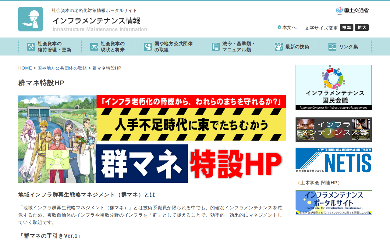 www.mlit.go.jp/sogoseisaku/maintenance/gunmane.htmlのウェブアーカイブ(魚拓)です。 元のページが削除されても、保存されたスクリーンショットとHTMLで内容を確認できます。