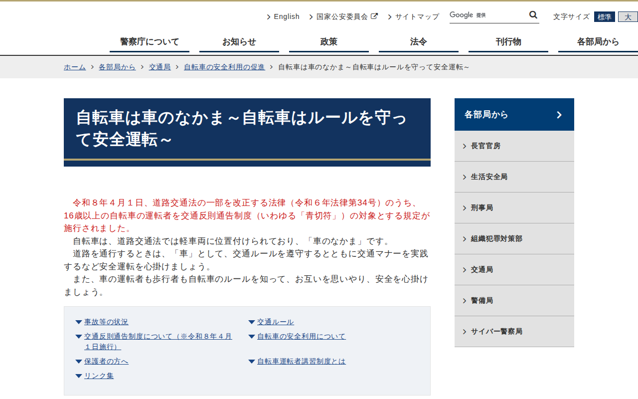 www.npa.go.jp/bureau/traffic/bicycle/info.html
