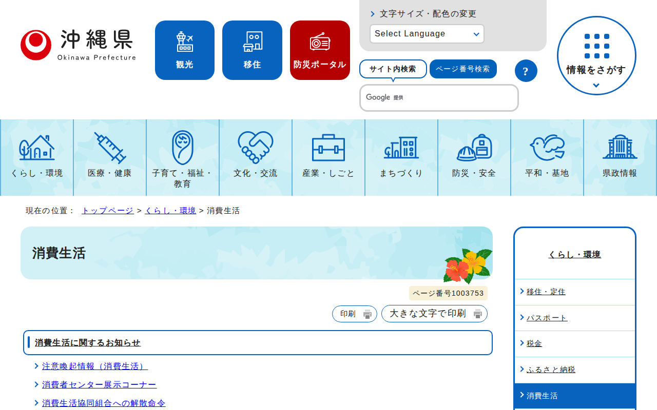 www.pref.okinawa.lg.jp/kurashikankyo/shohi/index.html