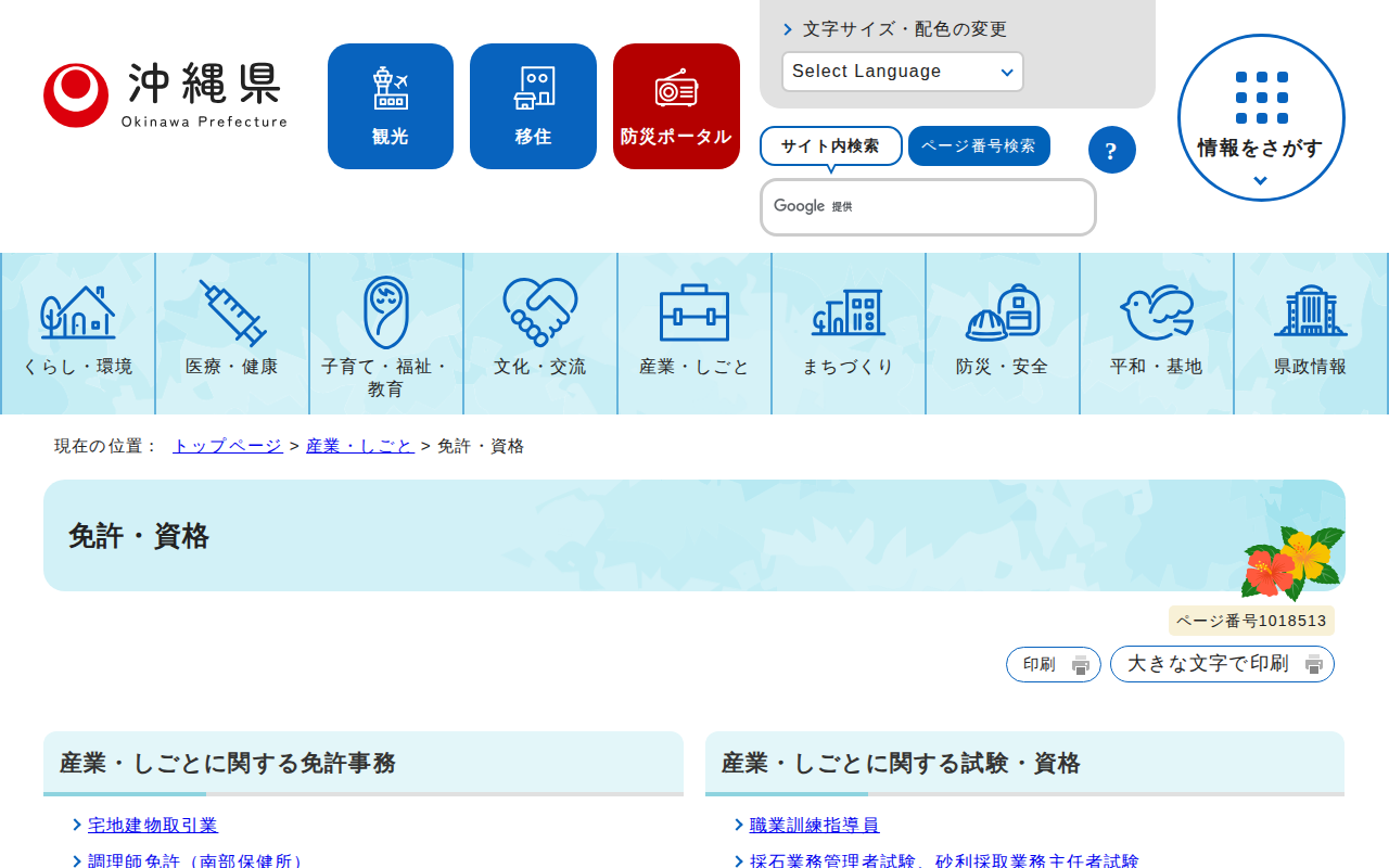 www.pref.okinawa.lg.jp/shigoto/license/index.html