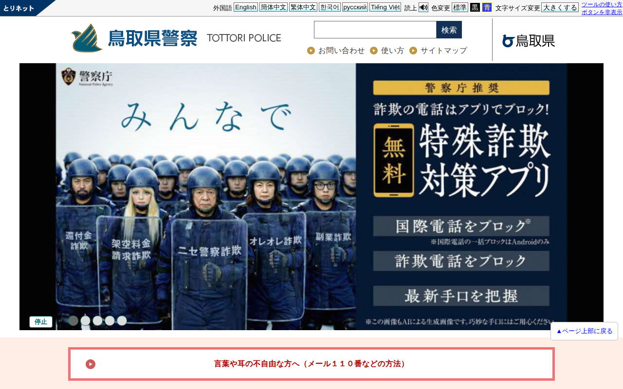 www.pref.tottori.lg.jp/policeのウェブアーカイブ(魚拓)です。 元のページが削除されても、保存されたスクリーンショットとHTMLで内容を確認できます。