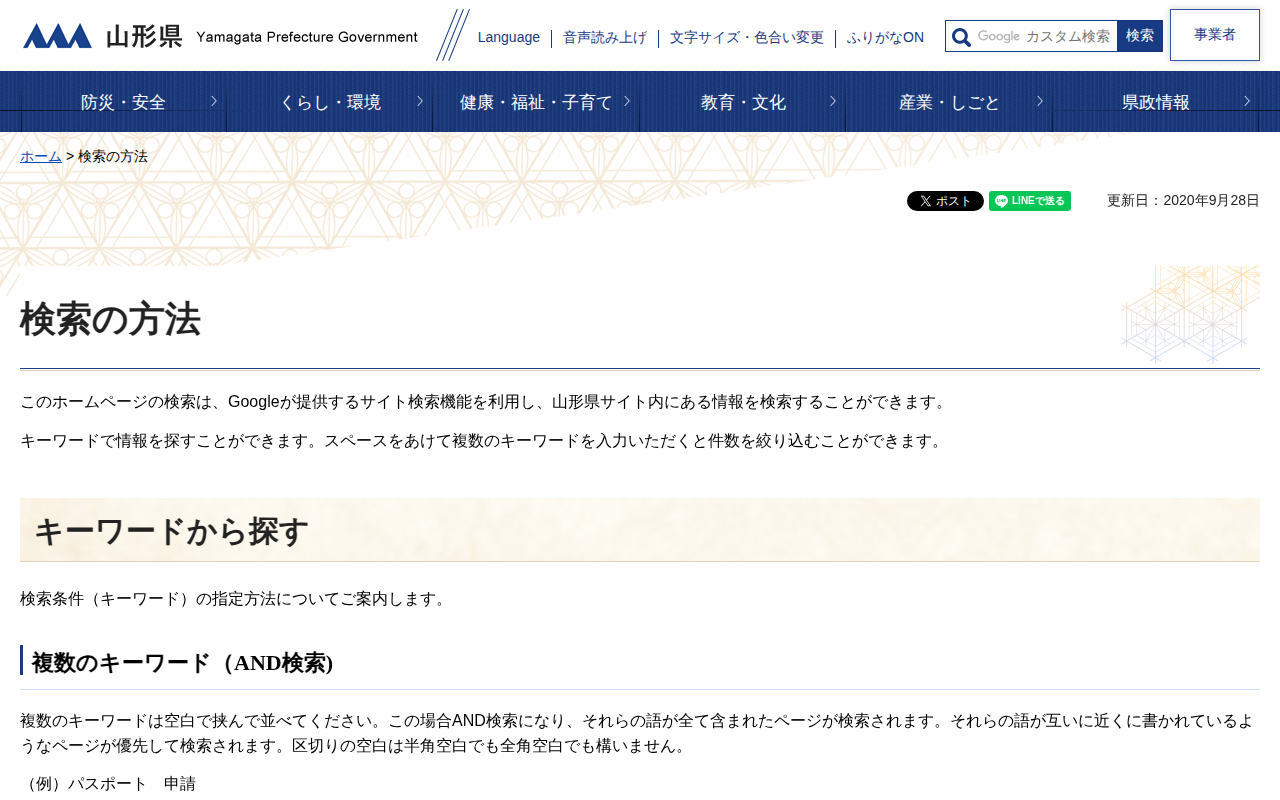 www.pref.yamagata.jp/kensakuhouhou.htmlのウェブアーカイブ(魚拓)です。 元のページが削除されても、保存されたスクリーンショットとHTMLで内容を確認できます。