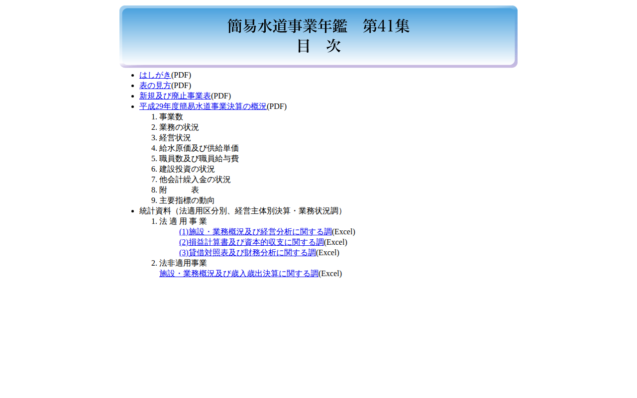 www.soumu.go.jp/main_sosiki/c-zaisei/kanisuidou41/mokuji.htmのウェブアーカイブ(魚拓)です。 元のページが削除されても、保存されたスクリーンショットとHTMLで内容を確認できます。