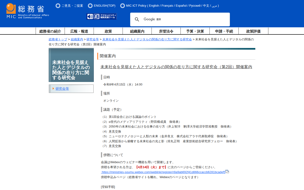 www.soumu.go.jp/main_sosiki/kenkyu/miraishakaiomisueta/02_kaisai.htmlのウェブアーカイブ(魚拓)です。 元のページが削除されても、保存されたスクリーンショットとHTMLで内容を確認できます。