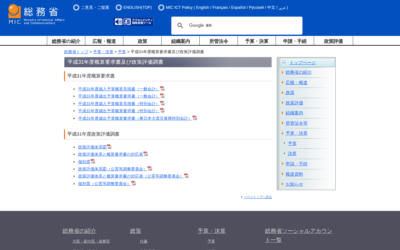 www.soumu.go.jp/menu_yosan/yosan_h31_00001.htmlのウェブアーカイブ(魚拓)です。 元のページが削除されても、保存されたスクリーンショットとHTMLで内容を確認できます。