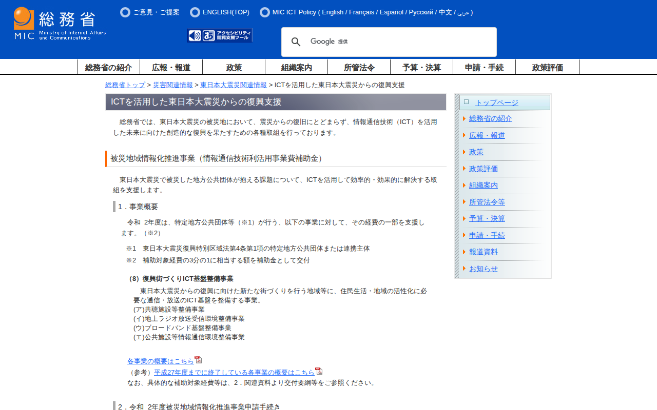 www.soumu.go.jp/shinsai/ict_fukkou_shien.html