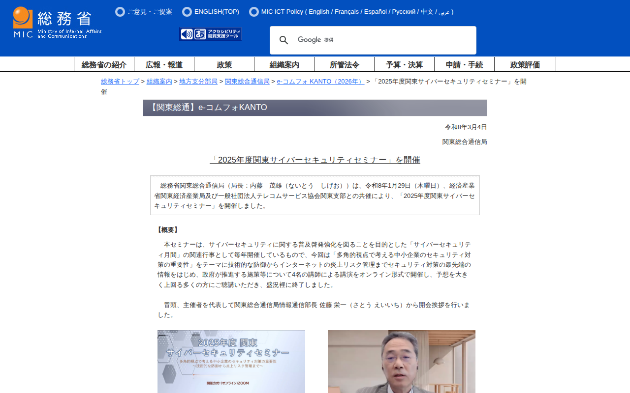 www.soumu.go.jp/soutsu/kanto/e-komfo/2026/0304ji.htmlのウェブアーカイブ(魚拓)です。 元のページが削除されても、保存されたスクリーンショットとHTMLで内容を確認できます。