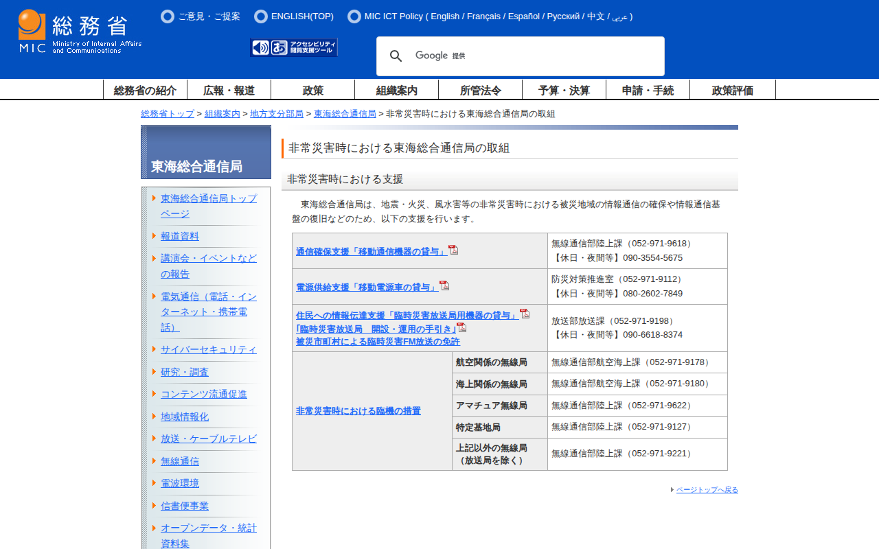 www.soumu.go.jp/soutsu/tokai/bousai/index.html