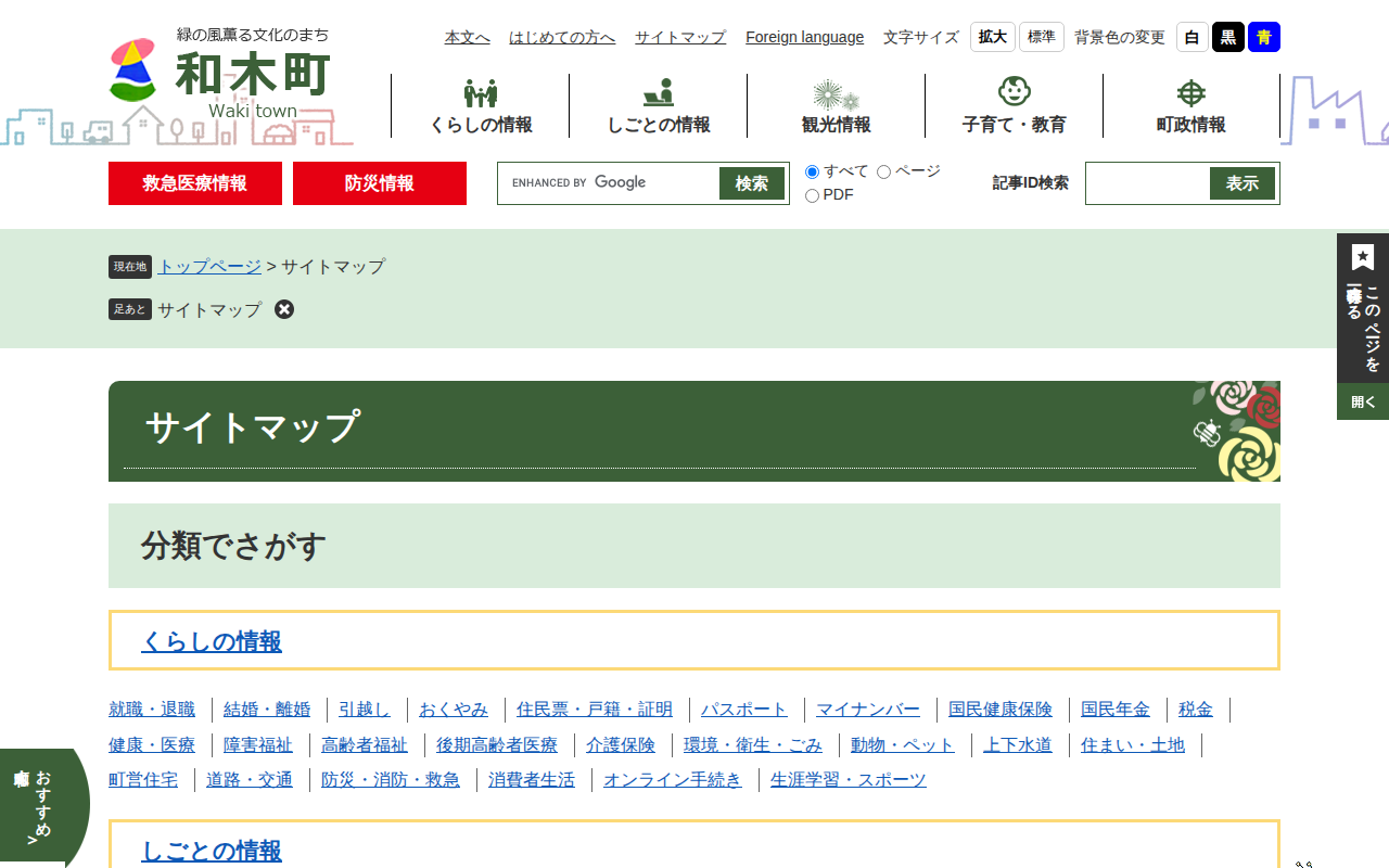 www.town.waki.lg.jp/sitemap.htmlのウェブアーカイブ(魚拓)です。 元のページが削除されても、保存されたスクリーンショットとHTMLで内容を確認できます。