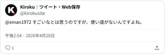 x.com/i/web/status/2046105268766011662のウェブアーカイブ(魚拓)です。 元のページが削除されても、保存されたスクリーンショットとHTMLで内容を確認できます。