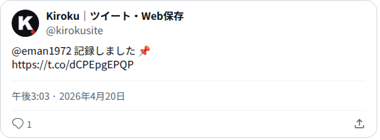 x.com/i/web/status/2046107378928464281のウェブアーカイブ(魚拓)です。 元のページが削除されても、保存されたスクリーンショットとHTMLで内容を確認できます。