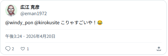 x.com/i/web/status/2046112753967096050のウェブアーカイブ(魚拓)です。 元のページが削除されても、保存されたスクリーンショットとHTMLで内容を確認できます。